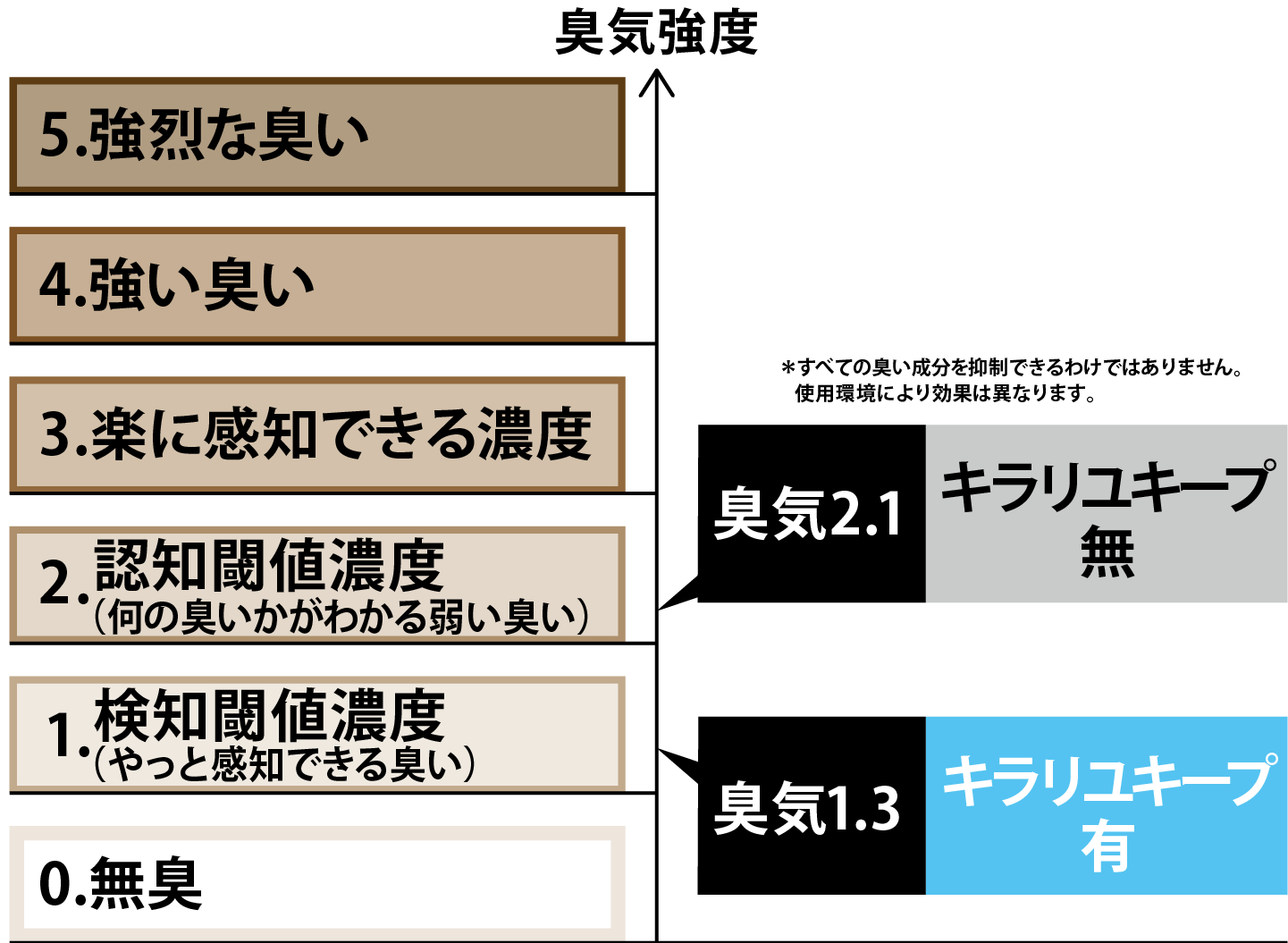 【試験結果】キラリユキープ運転により、臭気強度を2未満(やっと感知できる臭い)に維持。(三菱試験による)