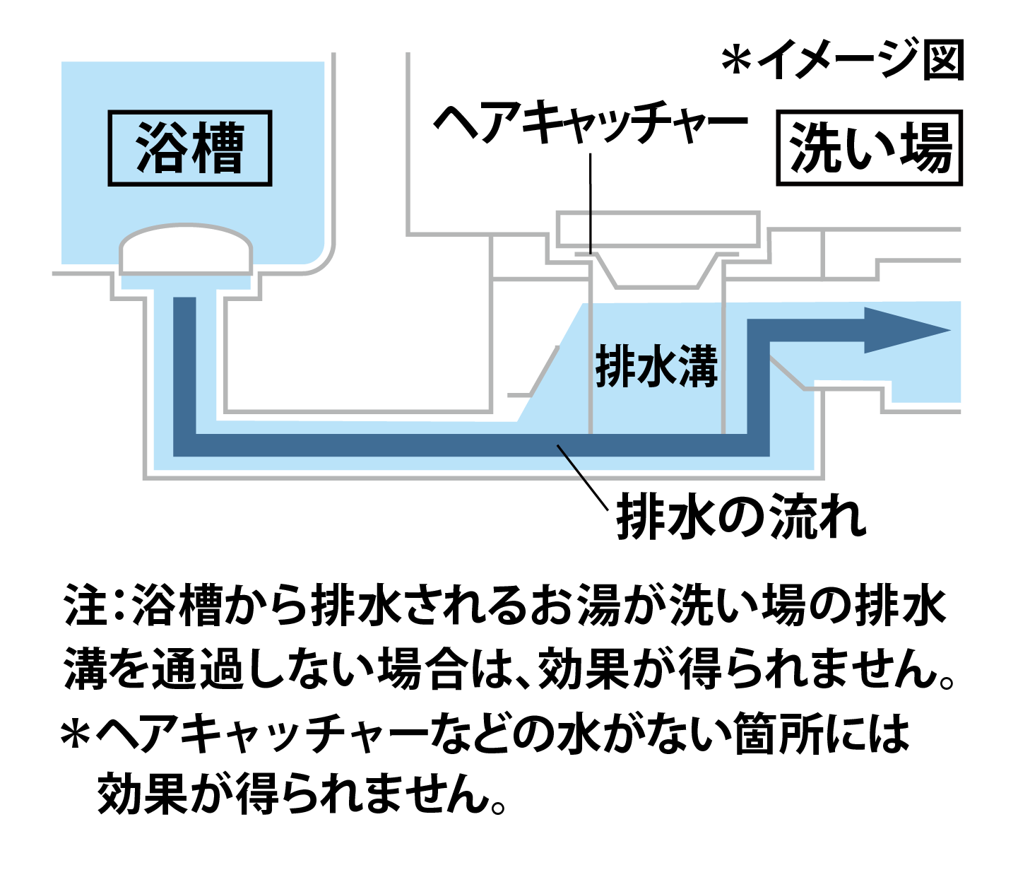 *1浴槽から排水されるお湯が洗い場の排水溝を通過しない場合は、効果が得られません。
